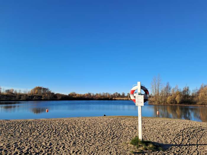 Handicappede har adgang til en handikapvenlig rampe, der fører hele vejen ned til vandkanten. Ikke langt fra stranden er der en stor parkeringsplads. Stranden består hovedsageligt af fint sand, med nogle få små til mellemstørrelse sten. Området omkring stranden består primært af grus- og grønne områder. Badevandkvaliteten ved Himmelsøen betegnes som "Fremragende", baseret på kontrolprøver foretaget regelmæssigt mellem 2016 og 2019. Særlige tiltag, såsom algevarslinger og reglement om svømmerkløe (ikter), er på plads for at sikre baderes sundhed. Efter badning anbefales det at tørre kroppen ordentligt mod irritation forårsaget af mikroskopiske laver. Besøgende opfordres til at respektere og holde området rent.